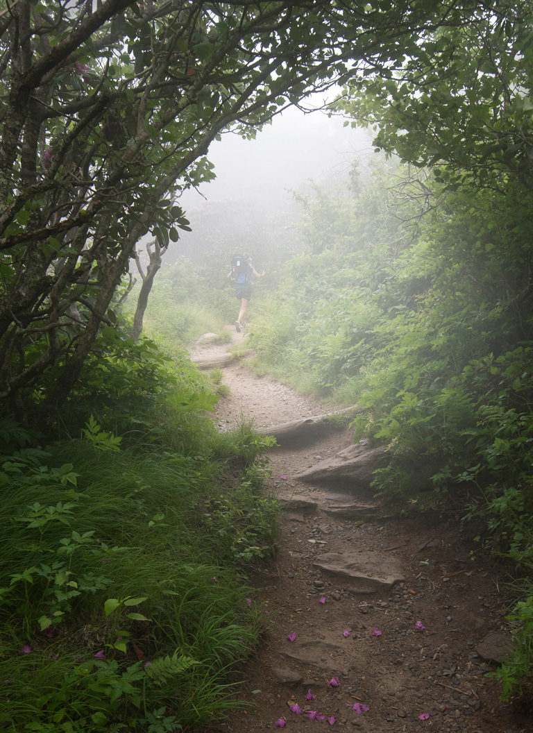 “Hiking to the Pinnacle” Alan R Clark March 2, 2017 768 × 1056 14th Annual Finalists A mom, with her son in a backback carrier, hikes up the Craggy Pinnacle trail on a foggy June morning. Photograph Copyright Alan R Clark, All Rights Reserved.
