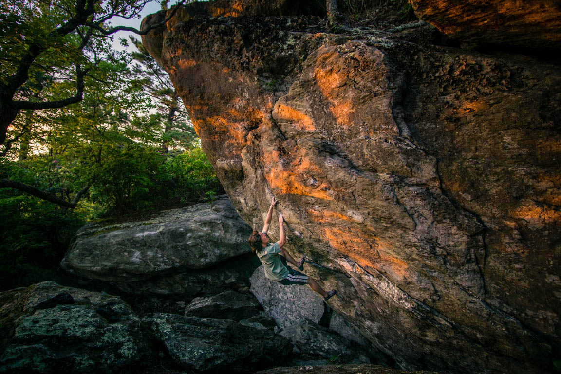 “Sunset at the Caffeine Wall” by Drew Mercer March 13, 2018 1152 × 768 15th Annual Finalists The Caffeine Wall is a tall boulder situated in the middle of the Hound Ears boulder field. Luke Wertis enjoys the last moments of the day climbing through the orange rays of the sunset. Photo copyright Drew Mercer, all rights reserved.