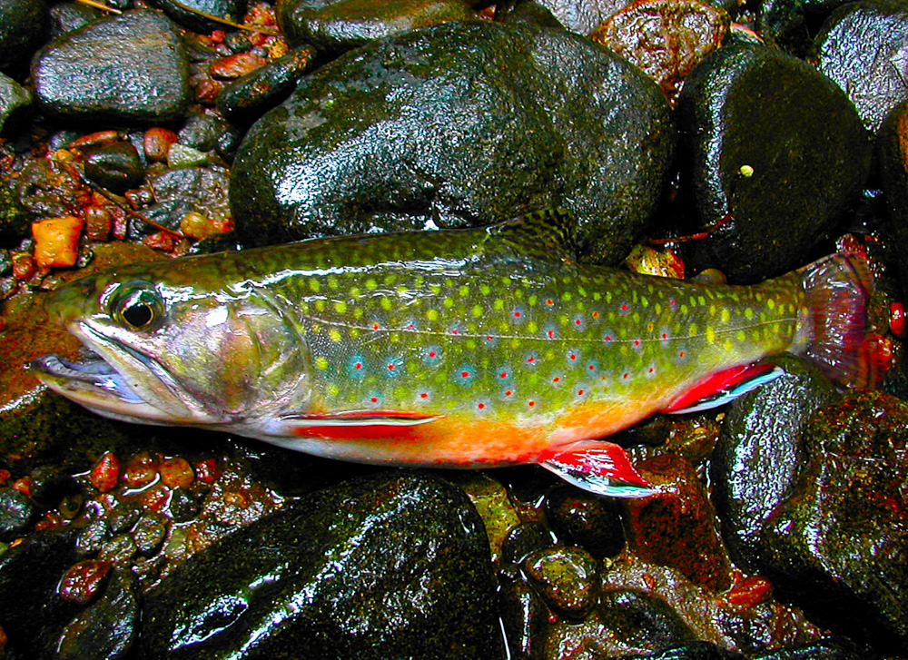 This is the only native trout in the Appalachian Mountains. The Brook Trout is also known locally as a Speckle Trout. In fact, it is scientifically classified as a char. I caught and released this one in the fall. During this time Brookies become extremely colorful in order to attract a mate to spawn with.