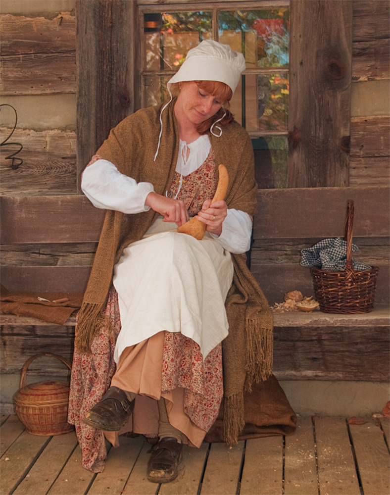 This photograph was taken at Hart’s Square in the fall of 2008. Dr. Hart has accumulated a collection village of restored pioneer buildings in Hickory, NC. He opens the village to the public for one day annually. Volunteers dress in periodic costume and play their appropriate roles. Photographic opportunities abound.