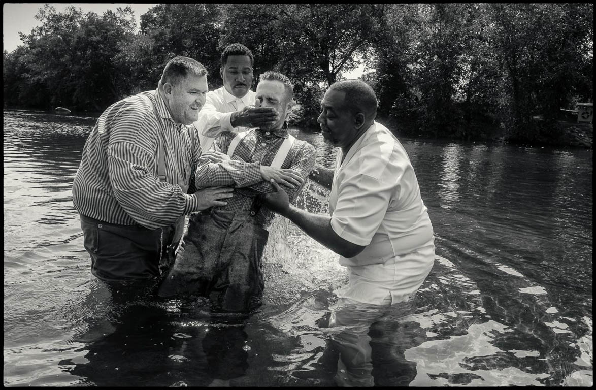 Every Summer there is a gathering called Yankee’s of Falmouth where reenacts from both sides come together and show, through living history, how the civilian population of Falmouth, VA worked to support the war. After a primitive church service was held the pastor, Edward Scott Sturdivant (seen on the left) led a few of the congregation down to the banks of the Rappahannock River for a baptism. There was another local church already in the river, but both pastors warmly agreed to baptist together.